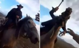 Yılkı atlarını fotoğrafını çekmek isterken kırbaçlı saldırıya uğradılar