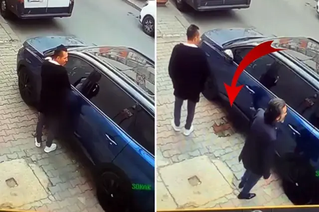Durumu fark eden araç sahibi, otomobilin yanından uzaklaşan kişinin yanına geldi. Saldırgan ve yanında bulunan kişi araç sahibine önce tepki gösterdi. Saldırgan daha sonra otomobil sahibini iterek üzerine yürüdü. Olay sırada araç sahibinin eşi ve çocuğunun da yanında olduğu öğrenildi.