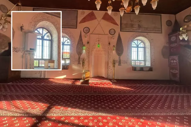 139 yıllık caminin içine yerleştirilen doğalgaz kombisini konumu görenleri hayrete düşürdü. Caminin arka tarafları yerine kıbleye bakan duvarına yerleştirilen doğalgaz kombisi, kutsal mekanın tarihi görünümüne de zarar veriyor.