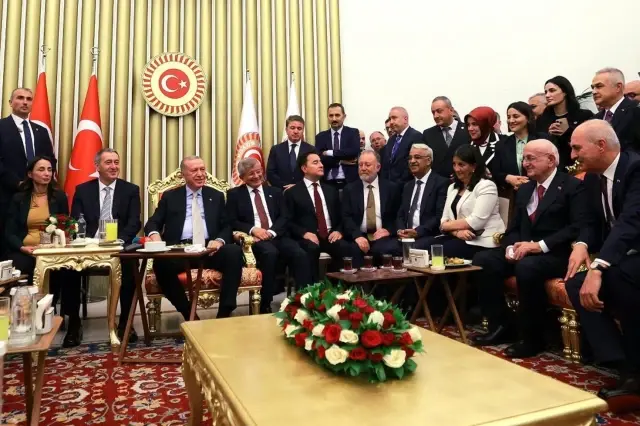 Meclis’in yeni yasama yılı için yapılan resepsiyon, devletin zirvesini bir araya getirdi. Cumhurbaşkanı Erdoğan’ın siyasi parti liderleri ile yaptığı sürpriz görüşme resepsiyona damga vurdu.