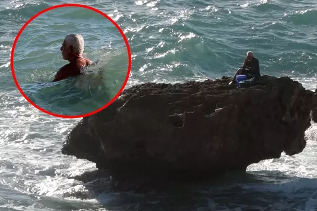 Antalya’nın Muratpaşa ilçesinde balık tutmak için falezlerden Bambus Plajı’na inen ve yüzerek yaklaşık 25 metre açıktaki kayalık bölgeye çıkan Yusuf Ö., dalga boyunun yükselmesiyle bulunduğu noktada mahsur kaldı.