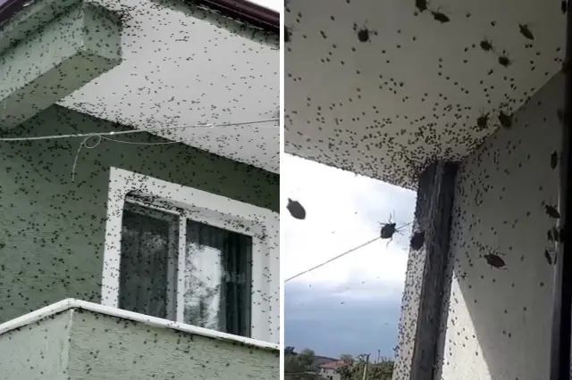 Kahverengi kokarca böceği kabusu geri döndü. Sakarya’nın Ferizli ve Söğütlü ilçelerinin bazı bölgelerinde adeta istilaya yol açan böcekler, bir binanın dış cephesini ise tamamen sardı.