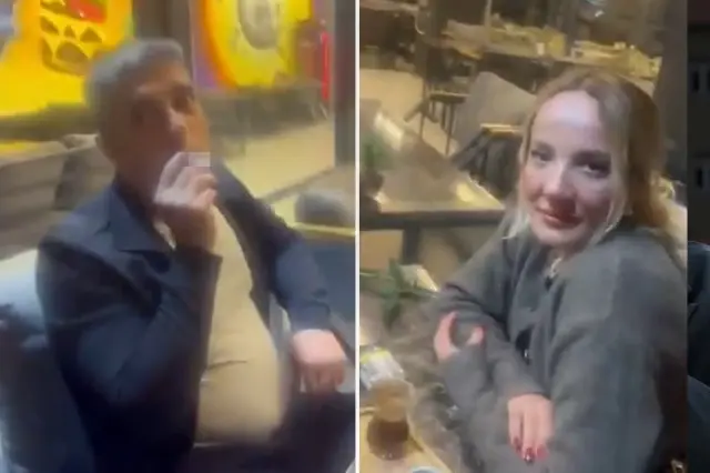 Eşini kafede başka bir kadınla otururken yakalayan kadın, görüntüleri cep telefonu kamerasıyla kaydederek sosyal medyada paylaştı. Videoda kadın, kocasının hala kendisiyle evli olduğunu ve yanında oturan kadının sevgilisi olduğunu, ayrıca kocasının daha önce annesini “kızını öldüreceğim” diye tehdit ettiğini öne sürdü.