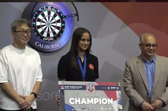 Güney Kore’nin Goyang kentinde düzenlenen Dünya Genç Kızlar Dart Şampiyonası finalinde güçlü rakibi Fillandiyalı Lida Lanko’yu 5-2 mağlup eden 15 yaşındaki Ayşegül Karagöz altın madalyaya uzandı.