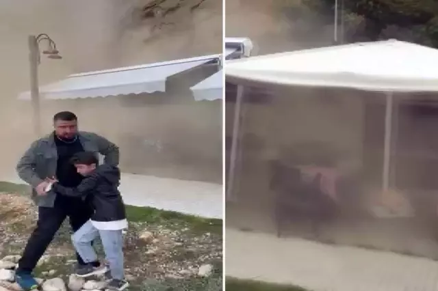 Olay anında çay bahçesinde oturan 1’i çocuk 7 kişi tehlike atlattı. Park halinde olan bir otomobilde hasar oluştu. Olaydan hemen sonra yaşananlar cep telefonu kamerası ile kaydedildi.