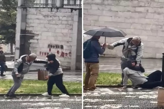 Gaziosmanpaşa’da 2 kişi arasında çıkan tartışma kısa sürede kavgaya dönüştü. Taraflardan biri tartıştığı kişiyi yerde sürükleyerek kaldırım taşıyla darbetti. O anlar cep telefonu kamerasına yansıdı.