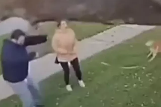 Görüntülerde, çift ve köpekleri sakin bir şekilde çimenlerde yürürken, yanlarında duran devasa ağaç aniden devrilmeye başlıyor. Her şey bir anda oluyor ve koca ağaç doğrudan çiftin üzerine doğru düşüyor.