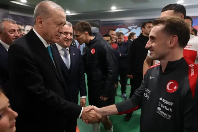 Cumhurbaşkanı Recep Tayyip Erdoğan, Türkiye’nin Gürcistan’ı 4-1 mağlup ettiği Dünya Kupası Eleme maçı sonrası soyunma odasına giderek futbolcuları ve teknik heyeti tebrik etti. Ziyaret sırasında moral ve motivasyonun yüksek olduğu, tüm takımın yüzünde galibiyetin mutluluğunun olduğu gözlendi.
