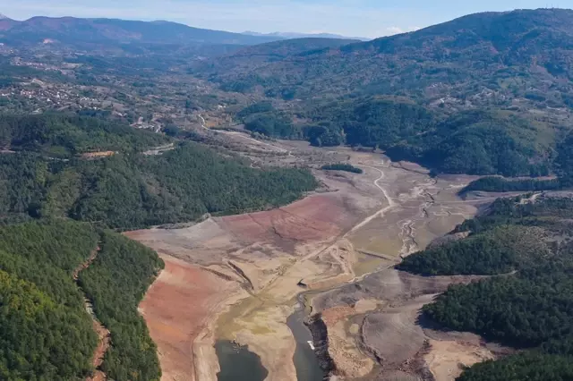 Bursa’da ortalama baraj doluluk oranı yüzde sıfıra düştü. “Su şehri” olarak bilinen kentteki felaket dron ile havadan görüntülendi. Görüntülerde barajların tamamen kuruduğu görülürken başlatılan seferberlik kapsamında 600 milyon metreküplük Çınarcık Barajı’nden kent merkezine 300 bin metreküp aktarılması için arıtma tesisi inşaatı hızlandı.