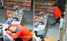 Benzin istasyonunda uyuyakalan çalışanın görüntüsü viral oldu
