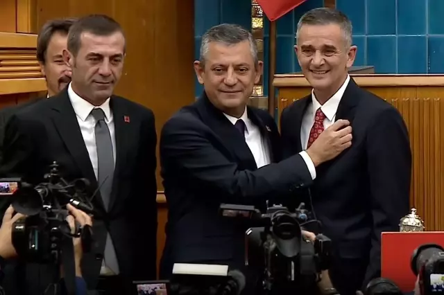 Dikbayır, CHP grup toplantısından önce CHP Ankara milletvekili Adnan Beker ile birlikte salona geldi. Ümit Dikbayır’ın rozetini CHP lideri Özgür Özel bizzat taktı.