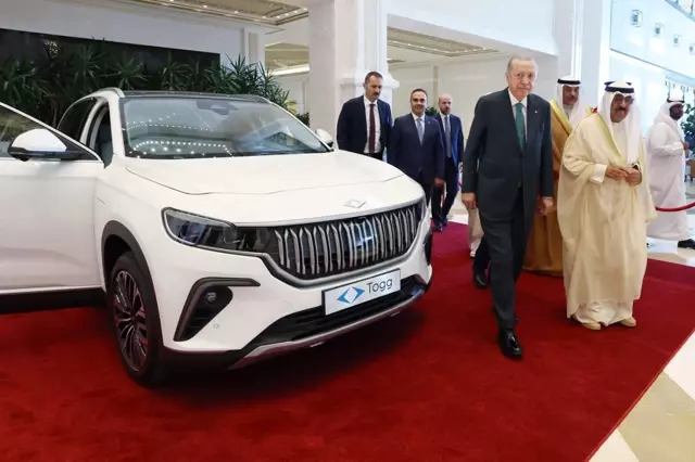 Cumhurbaşkanı Erdoğan, temasları kapsamında Kuveyt Emiri es Sabah’a beyaz renkte Togg aracı hediye etti.
