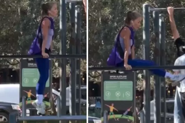 Ünlü oyuncu Bade İşçil, parkta spor yaparken objektiflere takıldı. Yürüyüşüne kısa bir ara verip spor aletlerinde egzersiz yapan oyuncu, çeşitli fitness hareketleriyle formunu korumaya çalıştı.