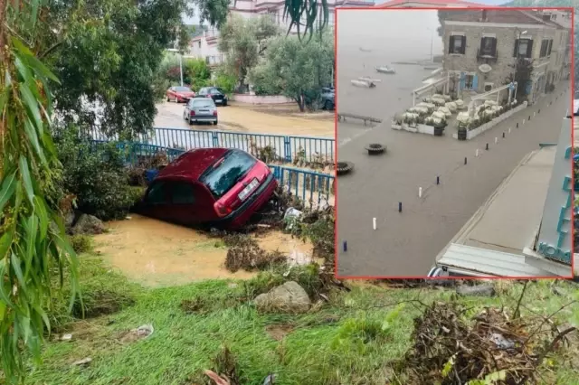 İzmir’in Foça ilçesinde gündüz saatlerinde etkili olan sağanak yağış kente felaketi yaşattı. Şiddetli yağış nedeniyle yollar sular altında kalırken; deniz ve karanın birleştiği anları gösteren fotoğraf felaketin boyutlarını gözler önüne serdi.