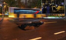 İstanbul’da sağanak nedeniyle yol çöktü, çukura giren taksi ters döndü