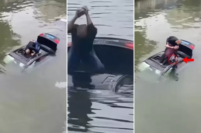 Çin’in Jiangsu eyaletinde bir otomobil, sürücüsünün kontrolünü kaybetmesi sonucu nehre düştü. Olay yerinden bir vatandaş nehre atlayıp otomobilin cam tavanını elindeki taşla kırarak sürücüyü kurtardı. Yaşananlar kameraya yansırken ölümle burun buruna kalan sürücünün telefonunu elinden bir an bırakmaması dikkat çekti.