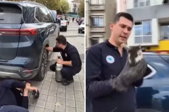 Tekirdağ’da park halindeki otomobilin arka lastik kısmına giren kedi, itfaiye ekiplerinin hava tüpüyle yaptığı dikkatli çalışma sonucu zarar görmeden kurtarıldı.