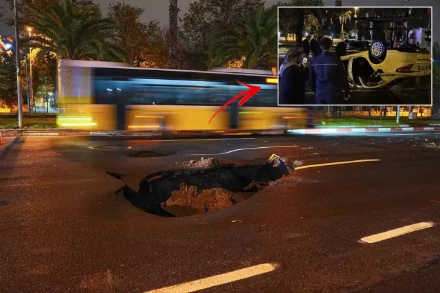Oluşan çukura düşmemek için manevra yaparken kontrolden çıkan A.Y. (62) idaresindeki 34 TKH 16 plakalı taksi ters döndü. İhbar üzerine belirtilen adrese itfaiye, polis ve sağlık ekipleri sevk edildi. Ekiplerin yardımıyla otomobilin içerisinden çıkarılan taksici A.Y. ambulansla hastaneye kaldırıldı. Ters dönen taksi çekici yardımıyla bulunduğu yerden kaldırıldı. Çökmenin meydana geldiği cadde üzerinde başka kazaların olmaması için ekipler geniş güvenlik önlemleri aldı.