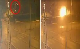 Tank anıtına çarpan otomobil alev aldı! İşte o anlar