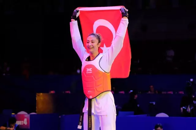 Dünya Tekvando Şampiyonası’nda mücadele eden Nafia Kuş Aydın, kadınlar +73 kiloda altın madalya kazandı.