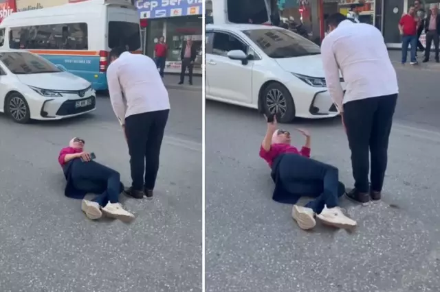 Görgü tanıklarının cep telefonu kamerasına yansıyan görüntülerde, kadının bir süre yerde yattığı, çevredeki sürücülerin ise şaşkınlıkla olayı izlediği görüldü.