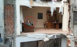 Kentsel dönüşüme giren bina yıkıldı, yan apartman duvarsız kaldı