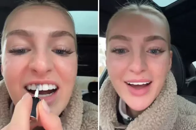 Sosyal medyada yer alan bir videoda dişlerinin daha beyaz gözükmesini isteyen bir kadının, dişlerini oje ile boyadığı görüldü. Kadın, o anları da kayıt altına aldı.