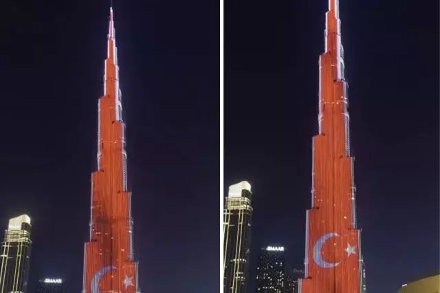 Dubai’nin sembol gökdeleni Burj Khalifa, Cumhuriyet’in kuruluşunun 102’nci yıl dönümü dolayısıyla Türk bayrağının kırmızı beyaz renklerine büründü.