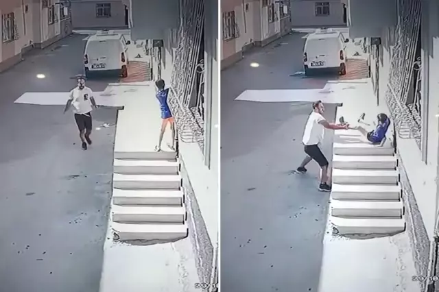 Adana’da kimliği belirsiz kişi, kovaladığı çocuğu evin merdivenlerinde yakalayıp, ayak bileğinden tutarak yere fırlattı. Tepki çeken o anlar güvenlik kamerasına yansıdı.