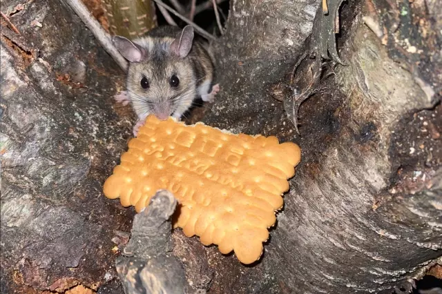 Amasya’da nesli tükenme tehlikesi altında olan Anadolu dikenli faresi görüntülendi. Doğa yürüyüşü yaparken fareyi gören Bedrettin Oral, fareye lokumlu bisküvi yedirdi.