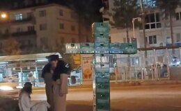 Bira kasalarıyla haç işareti yapan 3 kişiye gözaltı