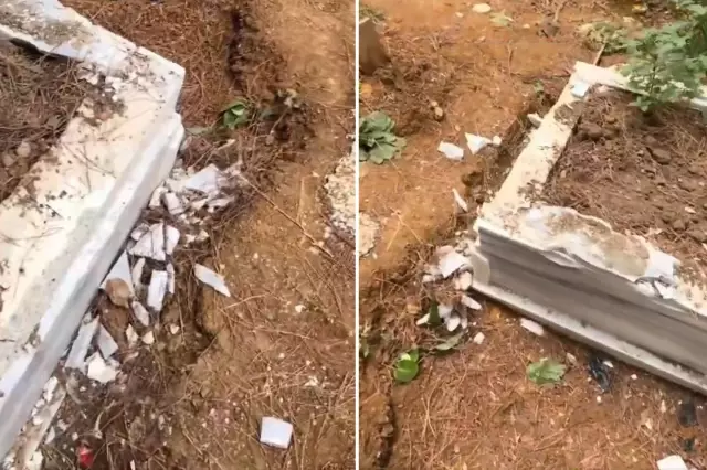 Türkiye'nin günlerce konuştuğu olayda 2 genç kızı katleden Semih Çelik'in kabri balyoz ve çekiç darbeleriyle darmadağın edilirken, mezar taşı yerinden sökülerek parçalanmış halde bırakıldı.