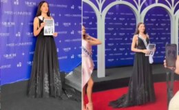 Miss Universe Türkiye Ceren Arslan siyahlara büründü, Atatürk’ün portresiyle yürüdü