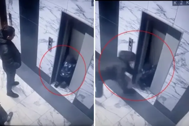 Güvenlik kamerasına yansıyan görüntülerde, küçük Matvey montunu giyip asansör kapısına doğru yürüyor. Ancak bir anda kapı yerinden oynuyor ve küçük çocuk karanlık boşluğa düşüyor. Panikleyen baba Aleksey, oğlunu tutmak için hamle yapsa da yetişemiyor.