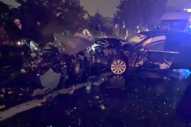 Edinilen bilgilere göre, sebze ve meyve yüklü kamyonet ile 4 otomobil henüz belirlenemeyen bir nedenle çarpıştı. Çarpışmanın şiddetiyle savrulan araçlardan biri bariyerlere çarparak durabildi. Kamyonet ile diğer otomobillerin arasında kalan bir araç ise metal yığınına döndü.