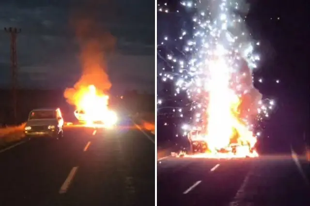 Kaza sonrası pikap sürücüsünün olay yerinden uzaklaştığı iddia edilirken, çarpışmanın etkisiyle otomobilde yangın çıktı. Alevler kısa sürede büyürken, araçta art arda patlamalar meydana geldi.
