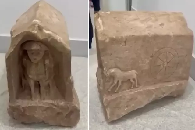 Mezar steli üzerindeki figürler de dikkat çekti. Bir yüzeyinde öne doğru yürüyen bir at figürü ile yanında tekerlek motifi bulunurken, diğer yüzeyde oyuk içerisinde insan tasviri yer alıyor.