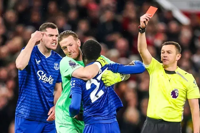 Manchester United-Everton maçının 13. dakikasında Evertonlı futbolcu Idrissa Gueye, takım arkadaşı Michael Keane'e tokat attığı için kırmızı kart gördü.