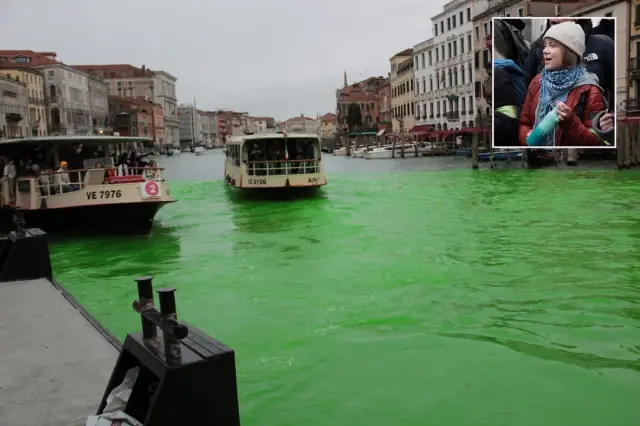 İklim aktivisti Greta Thunberg, Extinction Rebellion (Yok Oluş İsyanı) grubuyla birlikte Venedik'te düzenledikleri eylemde, şehrin simgesi Büyük Kanal'ı (Grand Canal) yeşile boyadı.