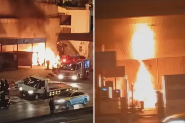 Esenyurt'ta E-5 karayolu yan yolda bulunan bir akaryakıt istasyonunda şarja bağlı bir elektrikli araç aniden alev alarak patladı. Patlamanın ardından yangın çıkarken, o anlar cep telefonu kamerasına yansıdı.