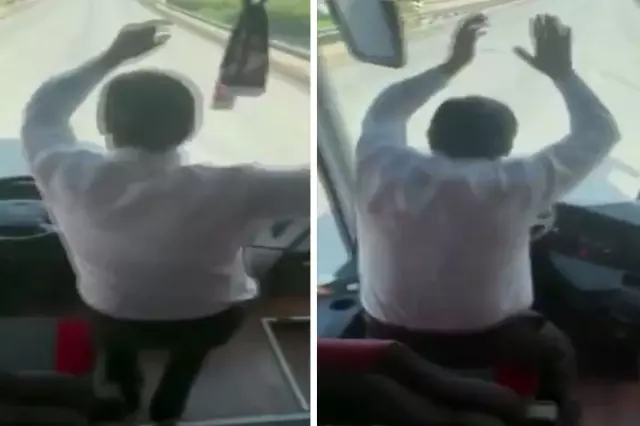 Süper Lig ekibi Antalyaspor taraftarını Konya'da oynanacak maç için taşıyan otobüsün şoförünün seyir sırasında koltuğundan kalkarak oynadığı görüntüler, tepkilere neden oldu.