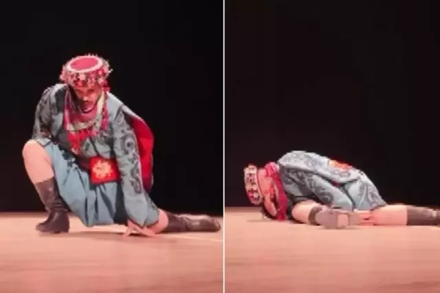 Gaziantep'in Nizip ilçesinde 'Öğretmenler Arası Mikrofon Sende Ses Yarışması' öncesi dans topluluğu gösteri yaparken ekipte yer alan dansçılardan Selahattin Kanar, ters hareket sonrası kendisini yere attı.