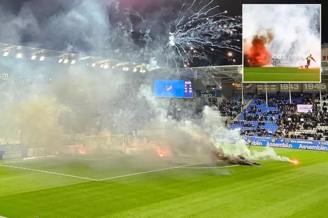 İsveç Ligi'nde oynanan play-off maçında takımları küme düşen Norrköping taraftarları, stada ve saha zeminine yakıcı maddelerle zarar verdi.