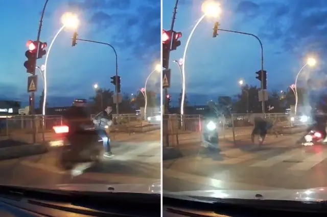 Edirne'de kırmızı ışık ihlali sonucu motosiklet, yolun karşısına geçmeye çalışan bir yayaya çarptı. Kazada hem yaya hem de motosiklet sürücüsü yaralanırken, olay anı güvenlik kamerasına yansıdı.