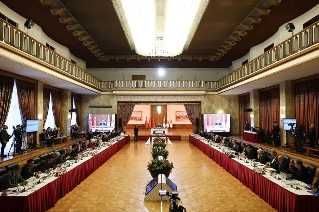 Türkiye Büyük Millet Meclisi (TBMM) Milli Dayanışma, Kardeşlik ve Demokrasi Komisyonu, 19'uncu toplantısını tamamladı. TBMM Başkanı Numan Kurtulmuş, Meclis Tören Salonu'nda gerçekleştirilen toplantının ikinci bölümünde, önceki toplantıda 5'te 3 nitelikli çoğunlukla alınan karar doğrultusunda üç siyasi partinin temsilcisi ve komisyon üyesi milletvekillerinin 24 Kasım'da İmralı Yüksek Güvenlikli Ceza İnfaz Kurumu'nda yaptığı görüşmeye ilişkin bazı milletvekillerinin sorularına yanıt verdi.