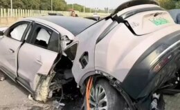 Dev firmanın elektrikli aracı kazada ikiye bölündü