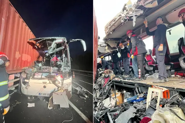Osmaniye'nin Bahçe ilçesinde yolcu otobüsünün tıra çarpıştığı kazada 6 kişi hayatını kaybetti, 11 kişi yaralandı. Kazada otobüsün sağ tarafının resmen param parça olduğu görüldü.