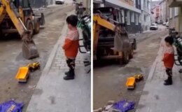 Yürekleri ısıtan görüntüler! Kamyonu ile oynayan çocuğu görünce yaptığına bakın