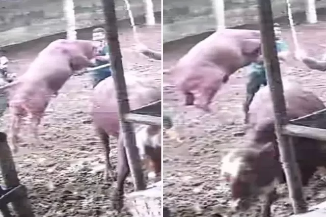 Amasya'nın Suluova ilçesinde büyükbaş hayvan yetiştiriciliği yapılan bir çiftlikte besiciler hayvanları bir araya toplamaya çalışıyordu. O sırada yön değiştiren bir boğa zıplayarak boynuzuyla besiciye vurdu. Aldığı şiddetli darbeyle kendisini yerde bulan besici bir anda neye uğradığını şaşırdı.