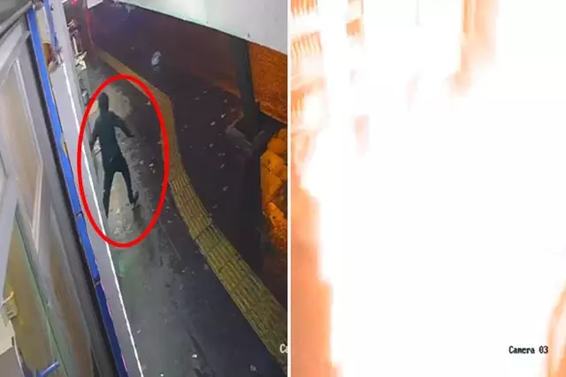 Kamera kaydında, yüzü kapalı şüphelinin kapısını açtığı marketten içeri el bombasını atıp kaçtığı, bir süre sonra patlamanın meydana geldiği ve yangına neden olduğu, iş yerinin yanından geçen bir kadın da patlama sırasında kırılan camlardan etkilenip, hızla bölgeden uzaklaştığı görüldü.